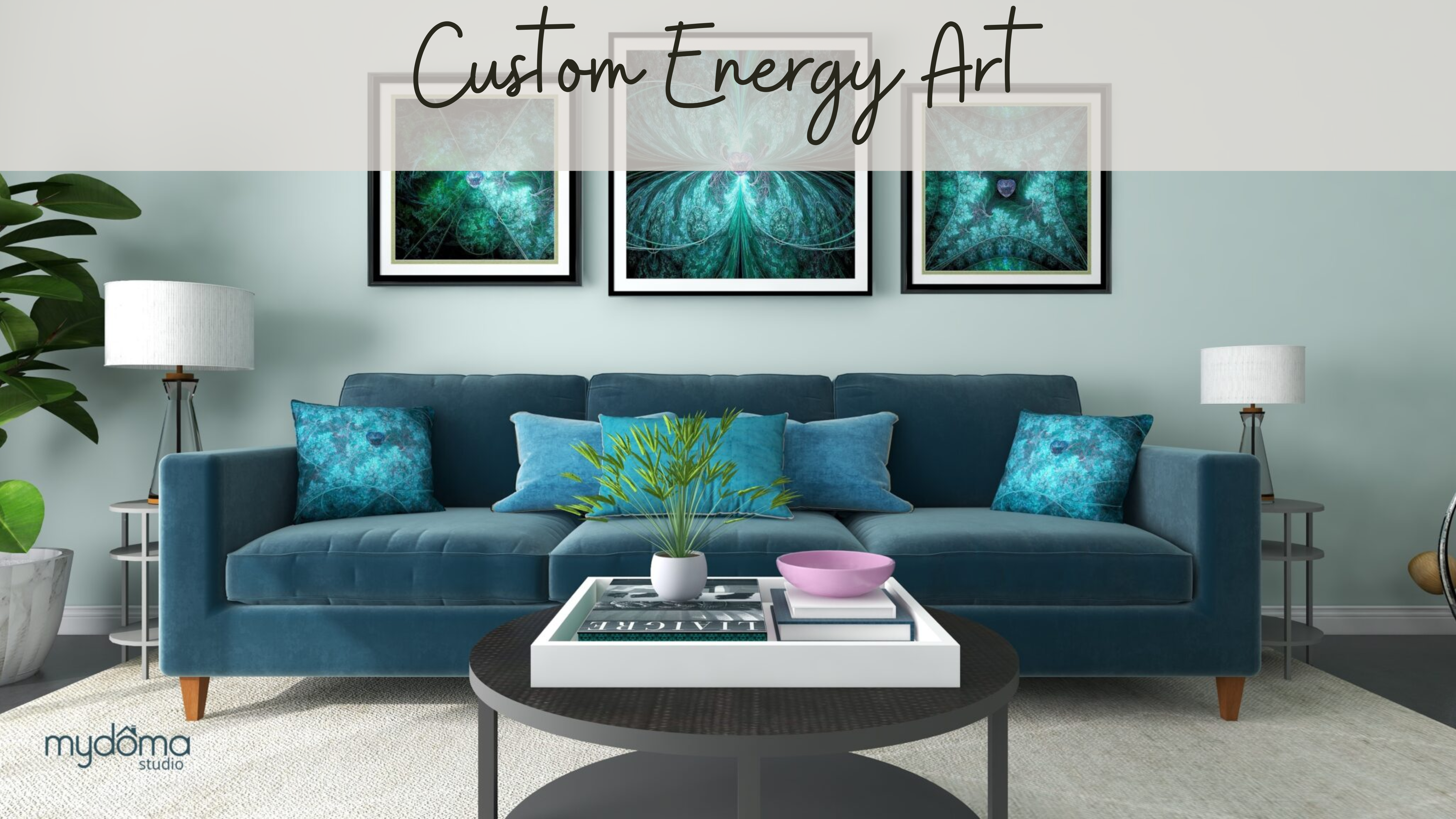 Custom energy art by Mary Ann Benoit featuring sacred symbols, intentional color, and aligned styling for transformation. Available as wall art, décor, or fashion with optional matching designs.