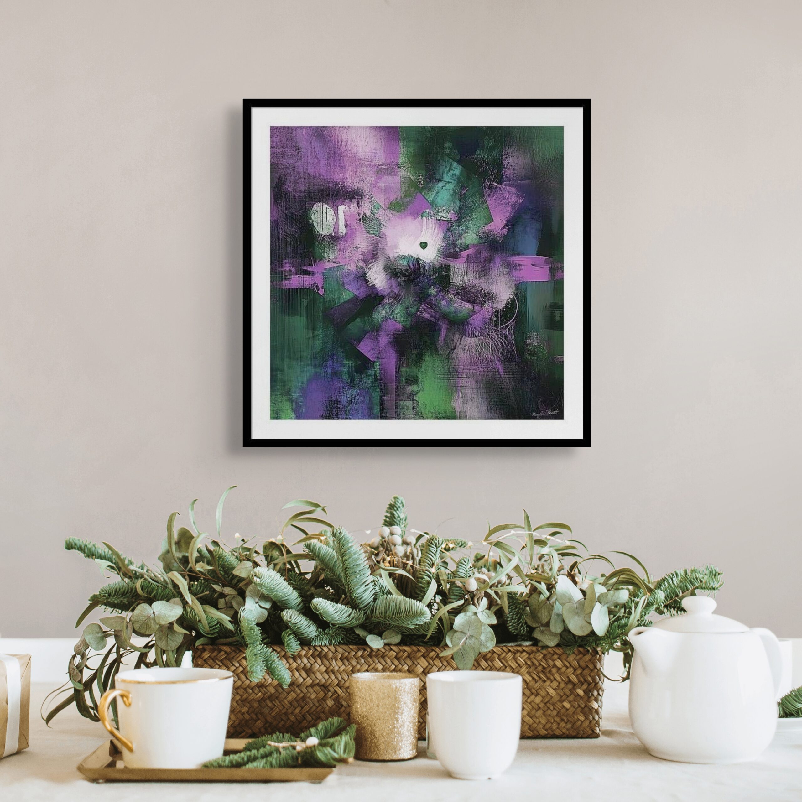 Enhance the look and feel of your rental space with resilient houseplants. “Unbreakable Light #14” energy art by Mary Ann Benoit,